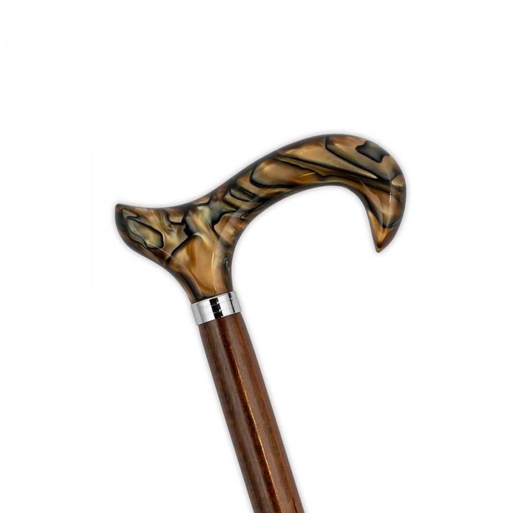 • مقبض بشكل منحني ومميز وباللون ممزوج بين الذهبي والاسود والبحري الذي أضاف على العكاز لمسة مميزة و عصرية.