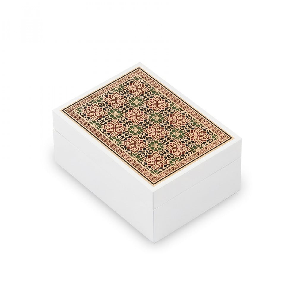 - علبة من الخشب الطبيعي الابيض و بنقشة زخرفية إسلامية تضيف لمسة عربية أصيلة.